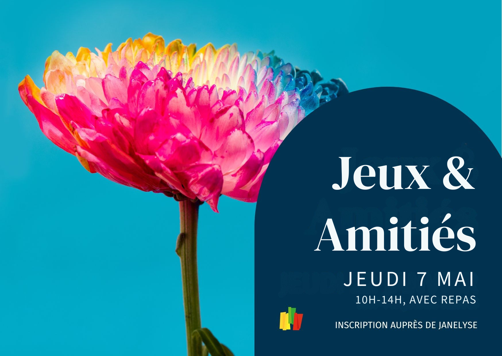 Jeudi 7 mai 2026 Jeux & Amitiés De 10h à 14h, avec repas Dans les locaux de l'ACTR. Inscription auprès de Janeylse.