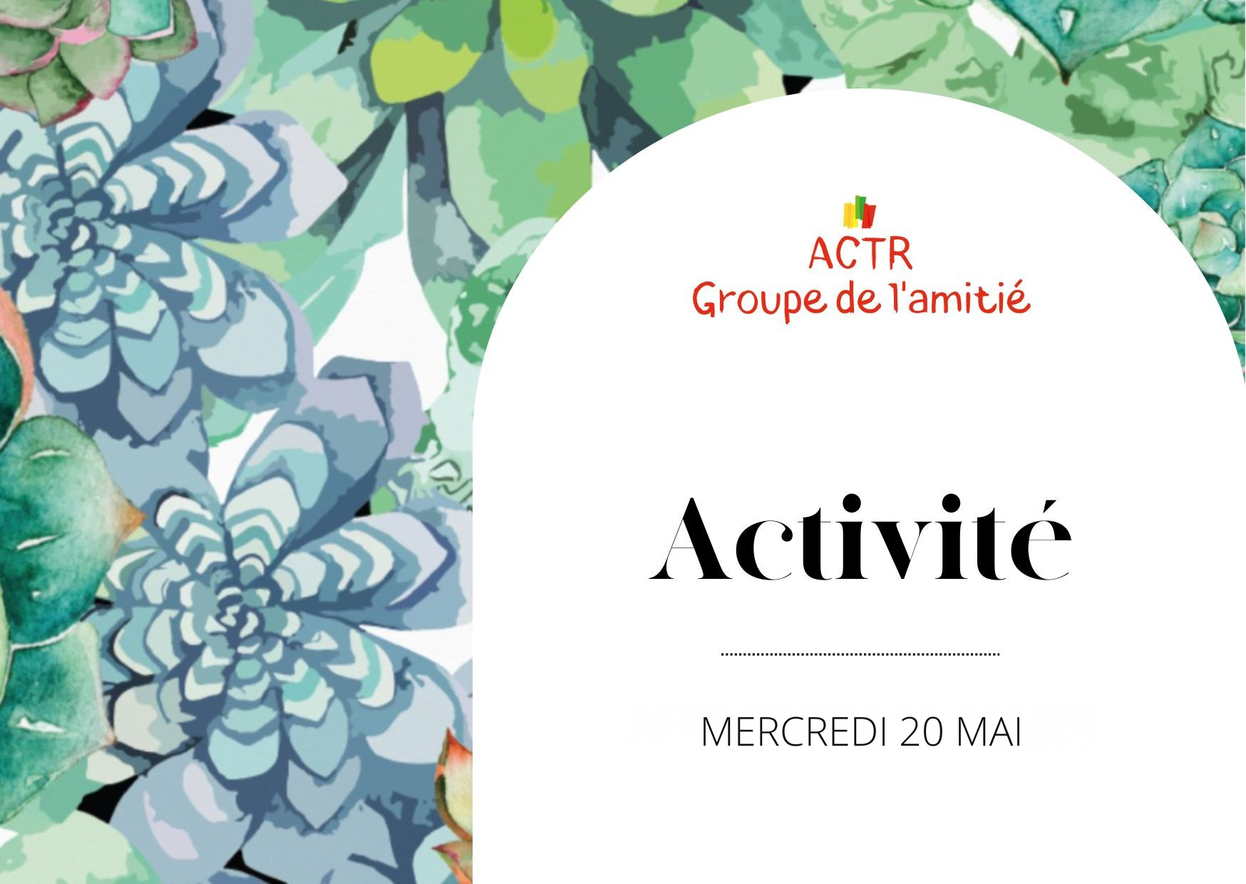 Mercredi 20 mai 2026 Activité du Groupe de l'amitié Inscription auprès d'Anne-Lise Flaction | flaction33@bluewin.ch - 021 731 16 58 - 079 646 86 83