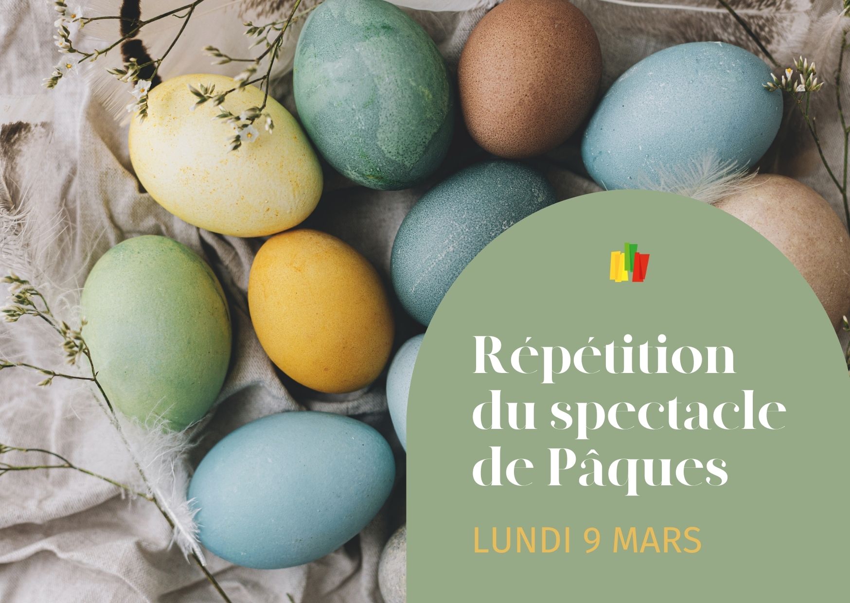 Lundi 9 mars 2026 Répétition pour le spectacle de Pâques Les dates des futures répétitions seront les 16.03 | 23.03 | 25.03.