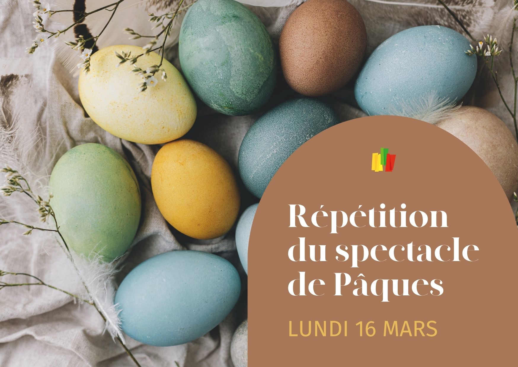 Lundi 16 mars 2026 Répétition pour le spectacle de Pâques Les dates des futures répétitions seront les 23.03 | 25.03.