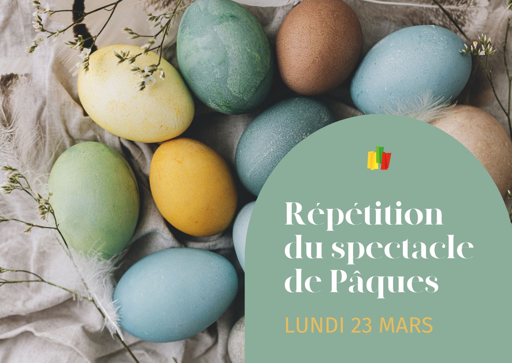 Lundi 23 mars 2026 Répétition pour le spectacle de Pâques Les dates des futures répétitions seront les 25.03.